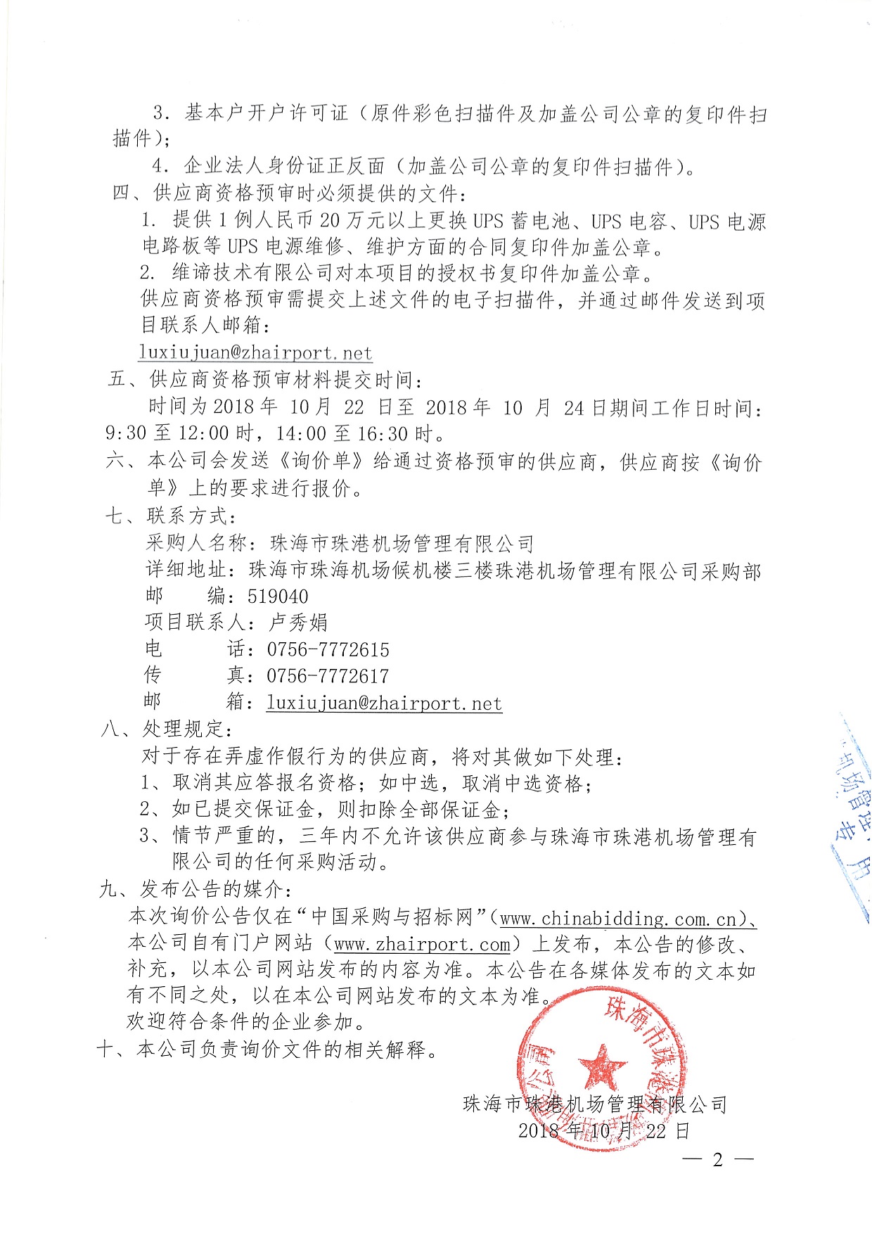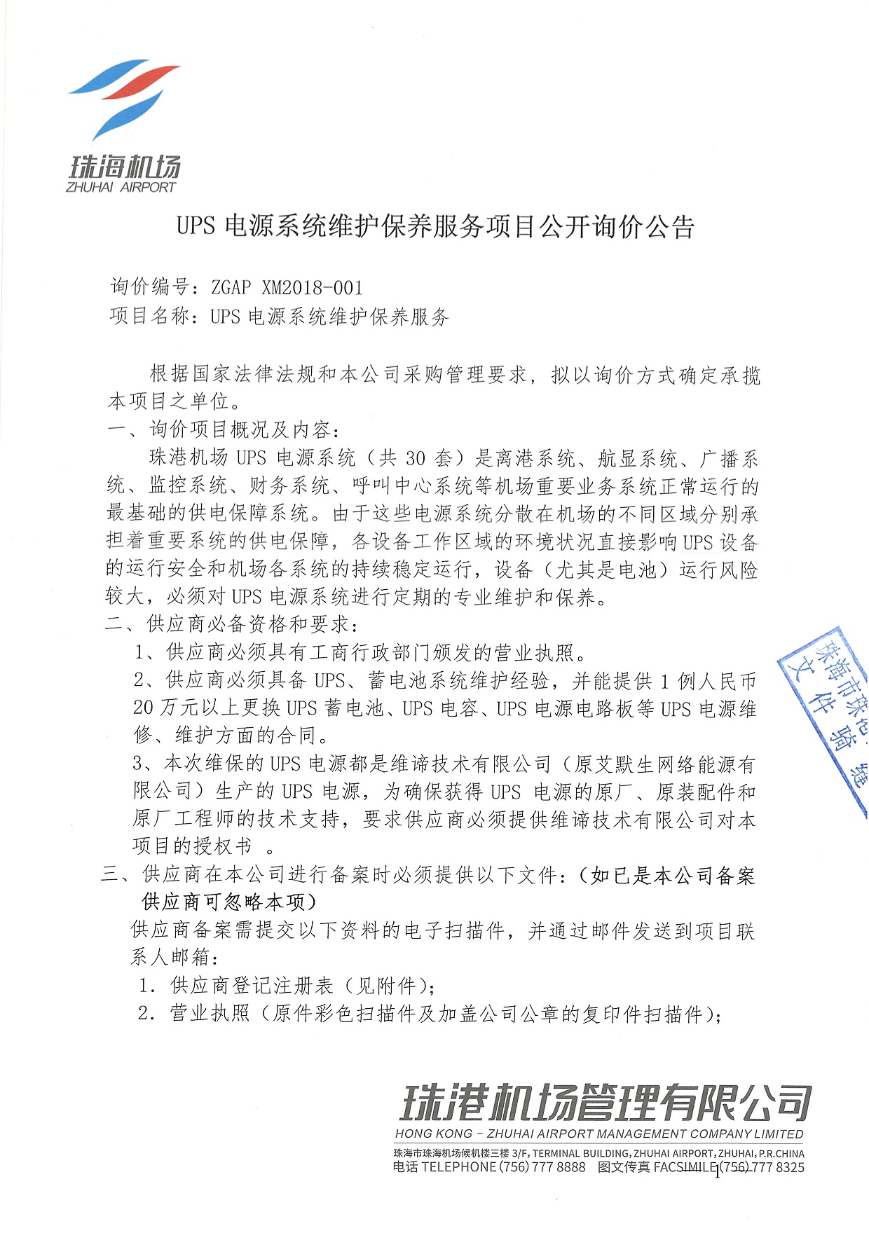 UPS电源系统维护保养服务项目公开询价公告