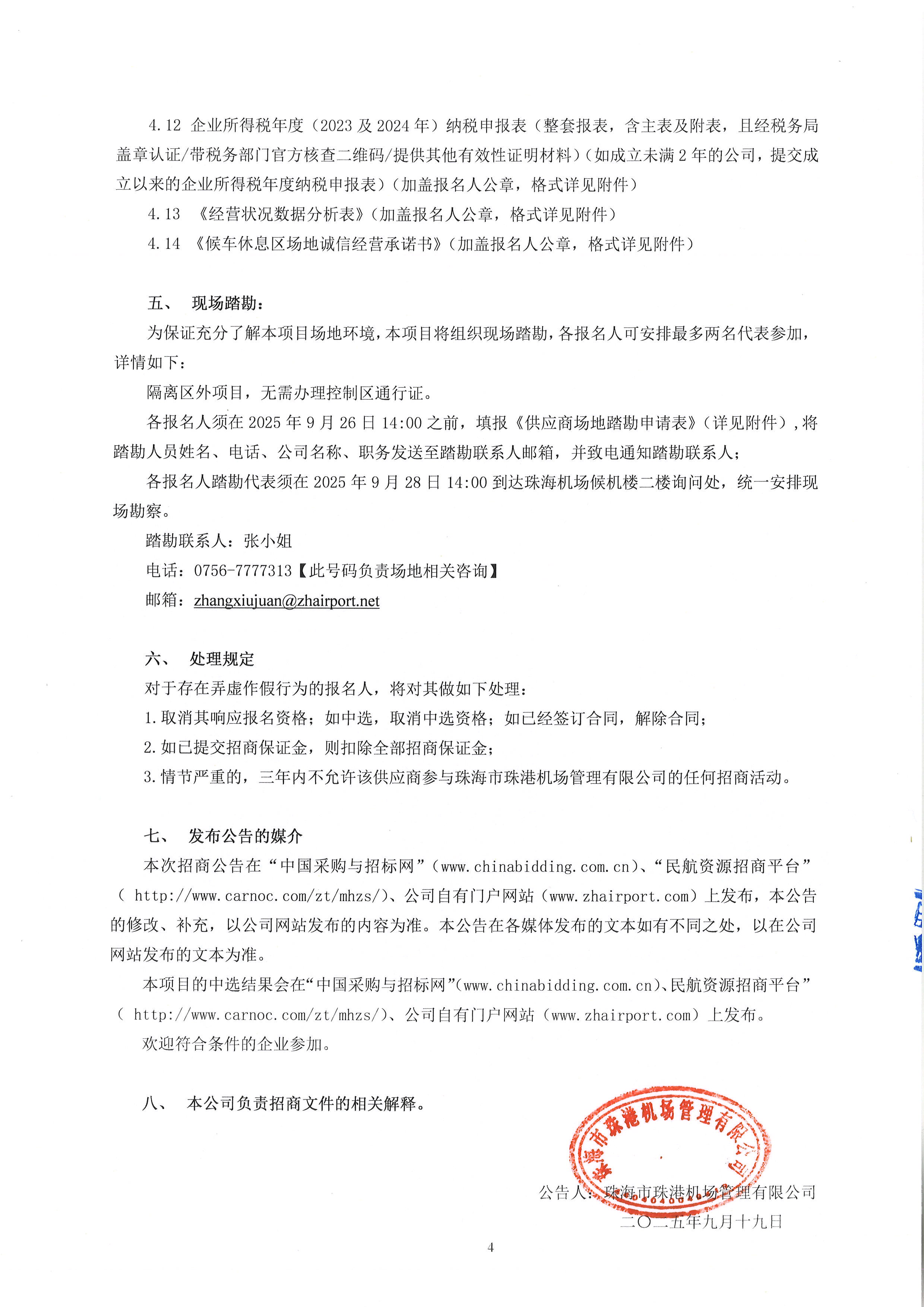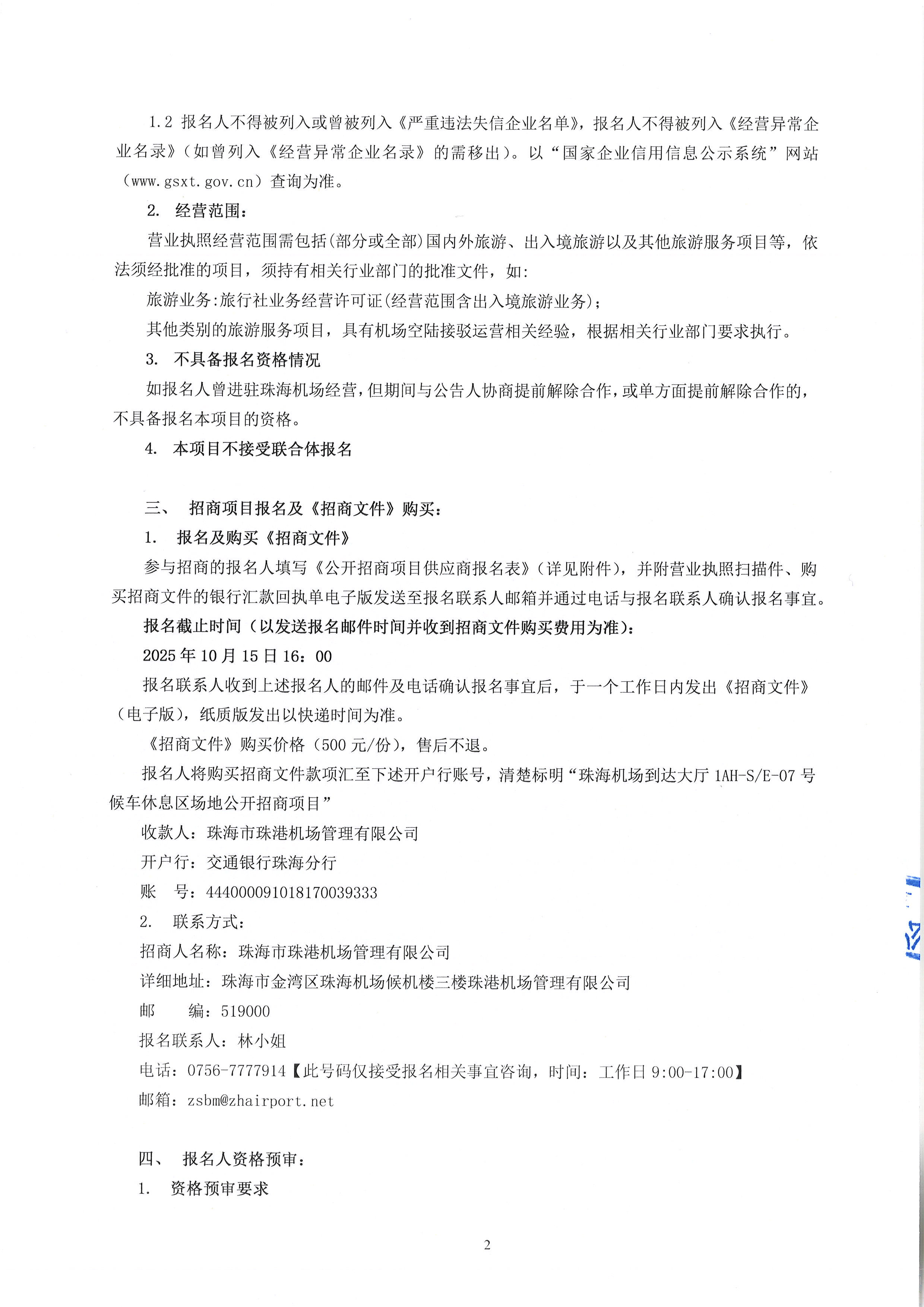 珠海机场到达大厅候车休息区场地公开招商项目-报名附件