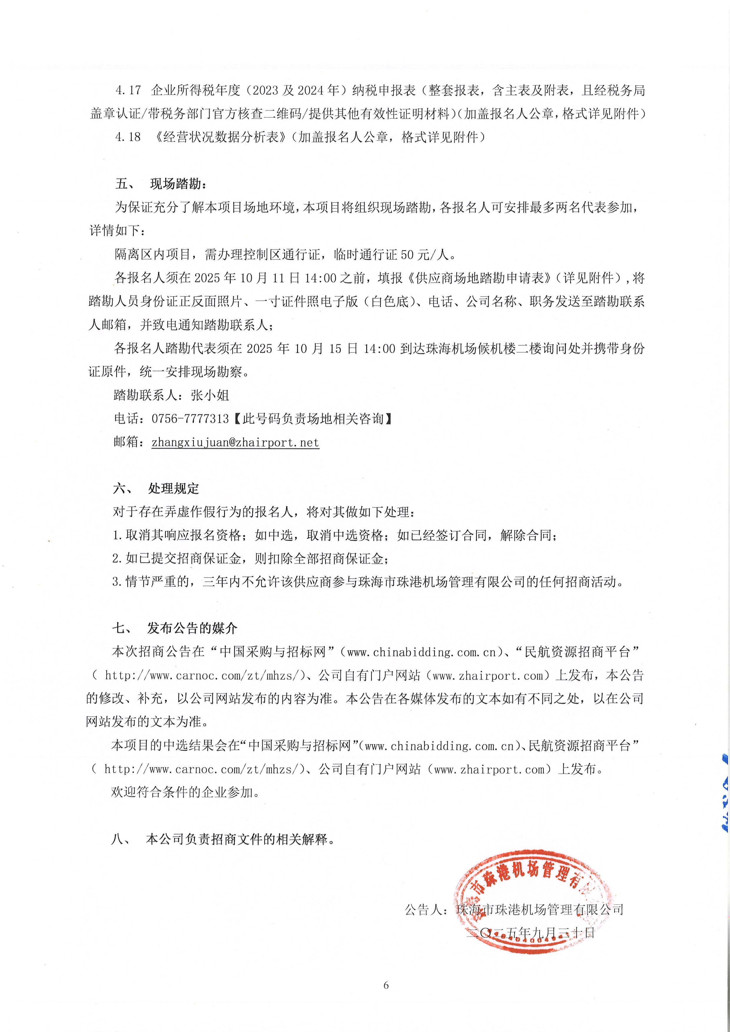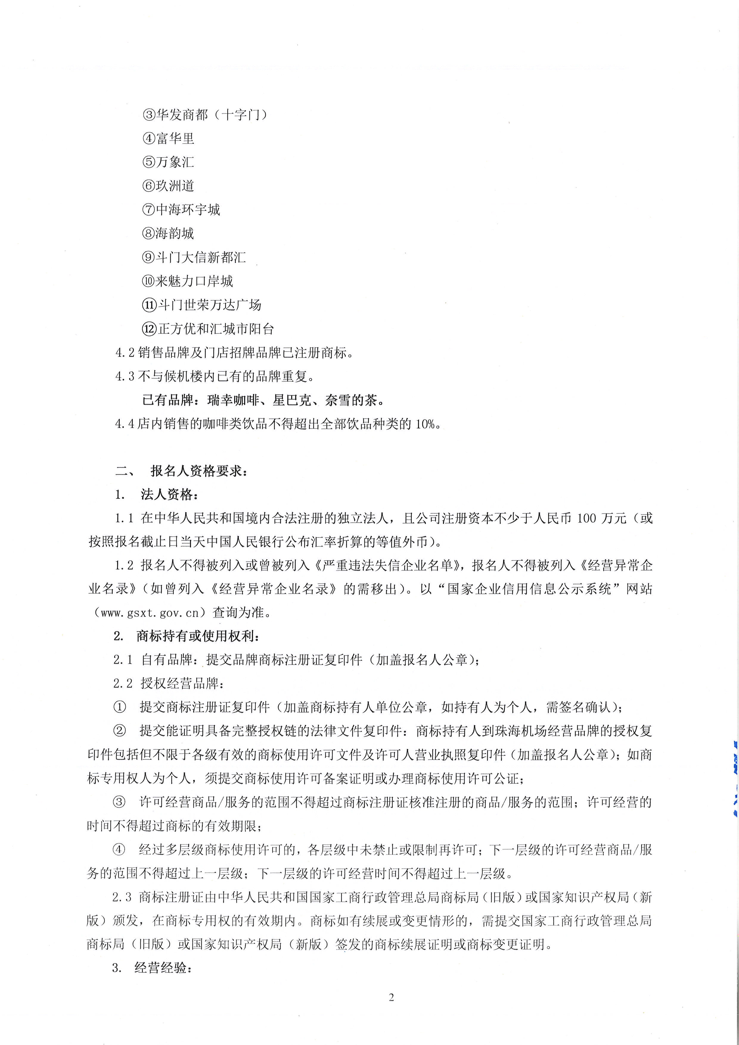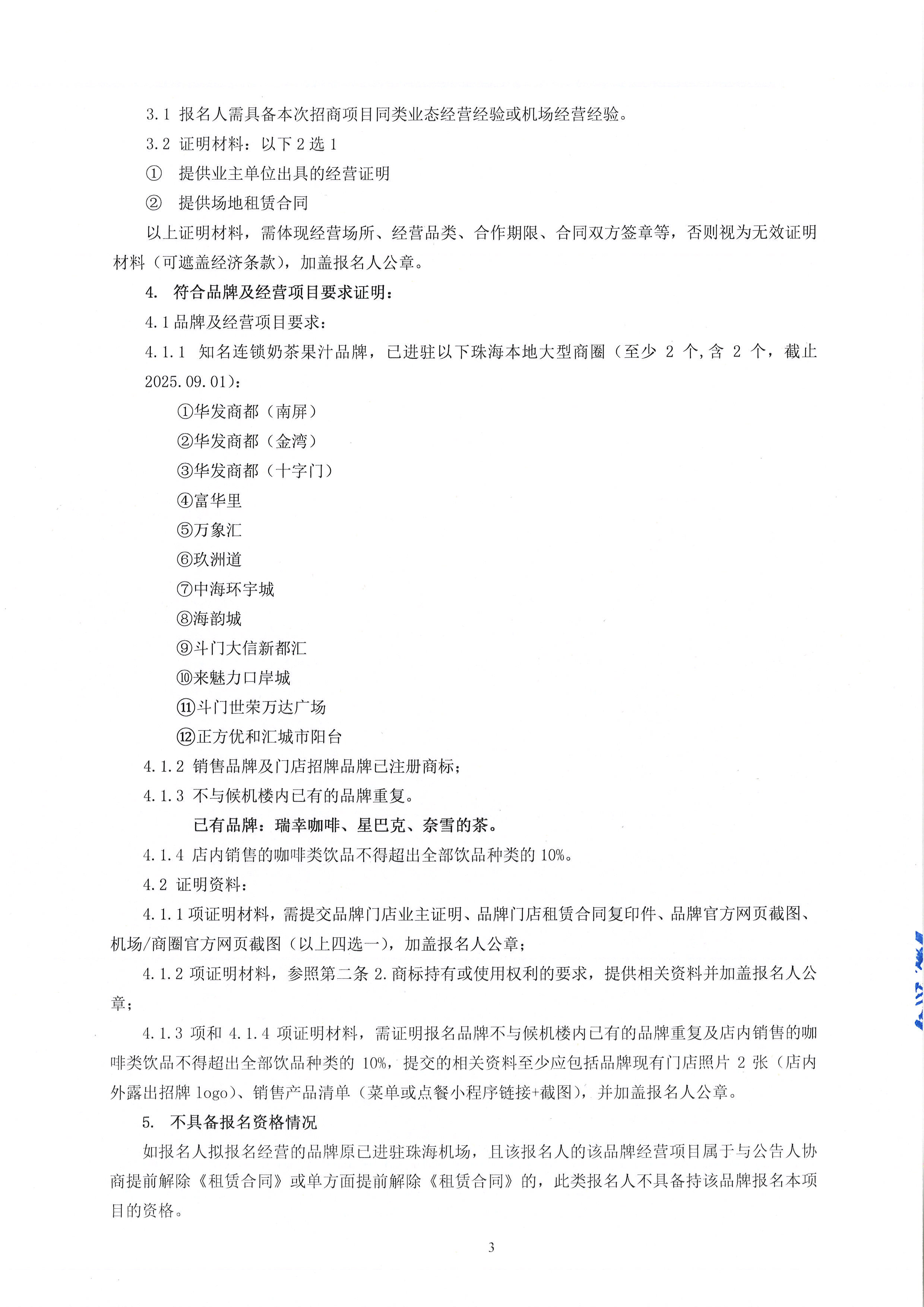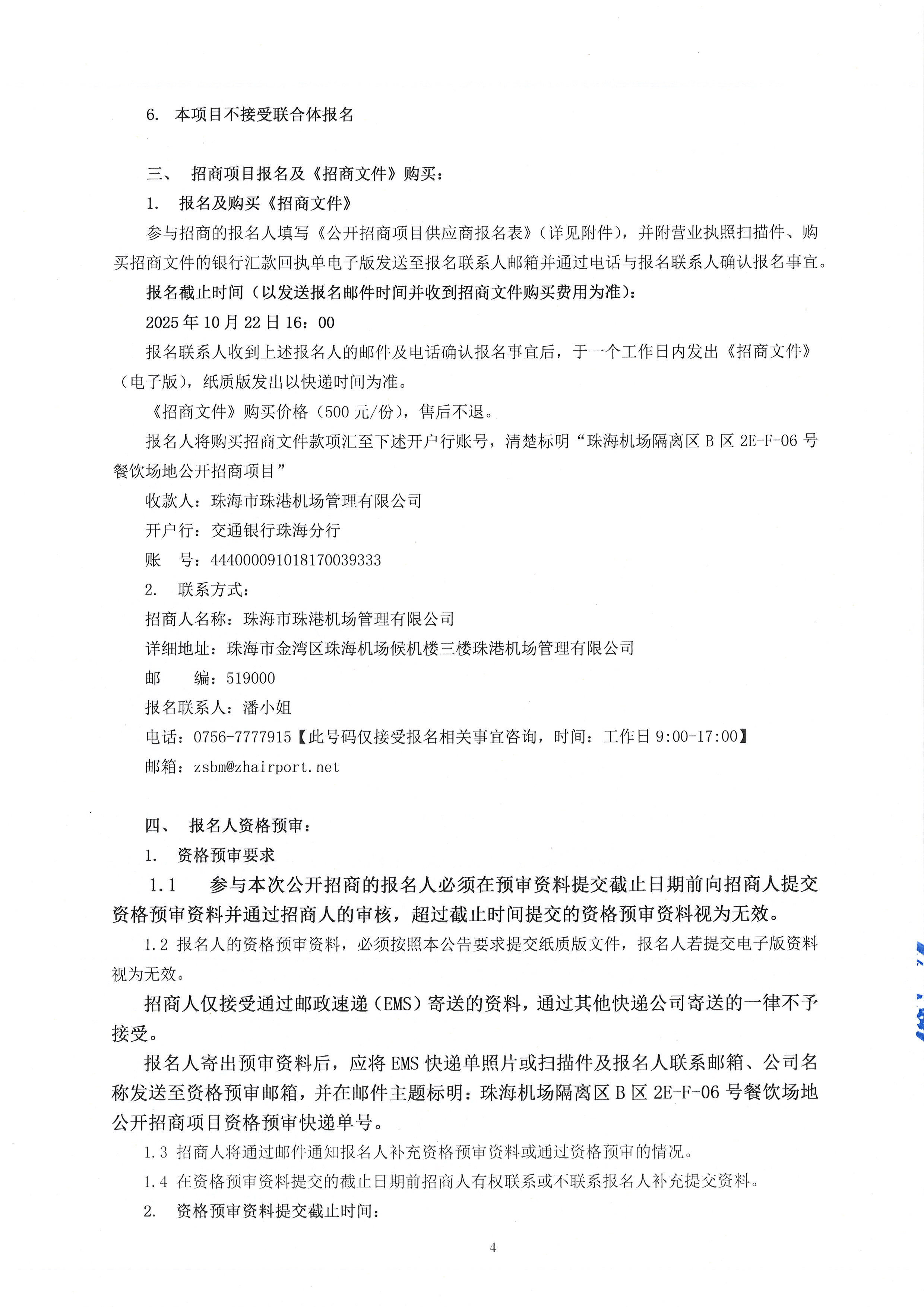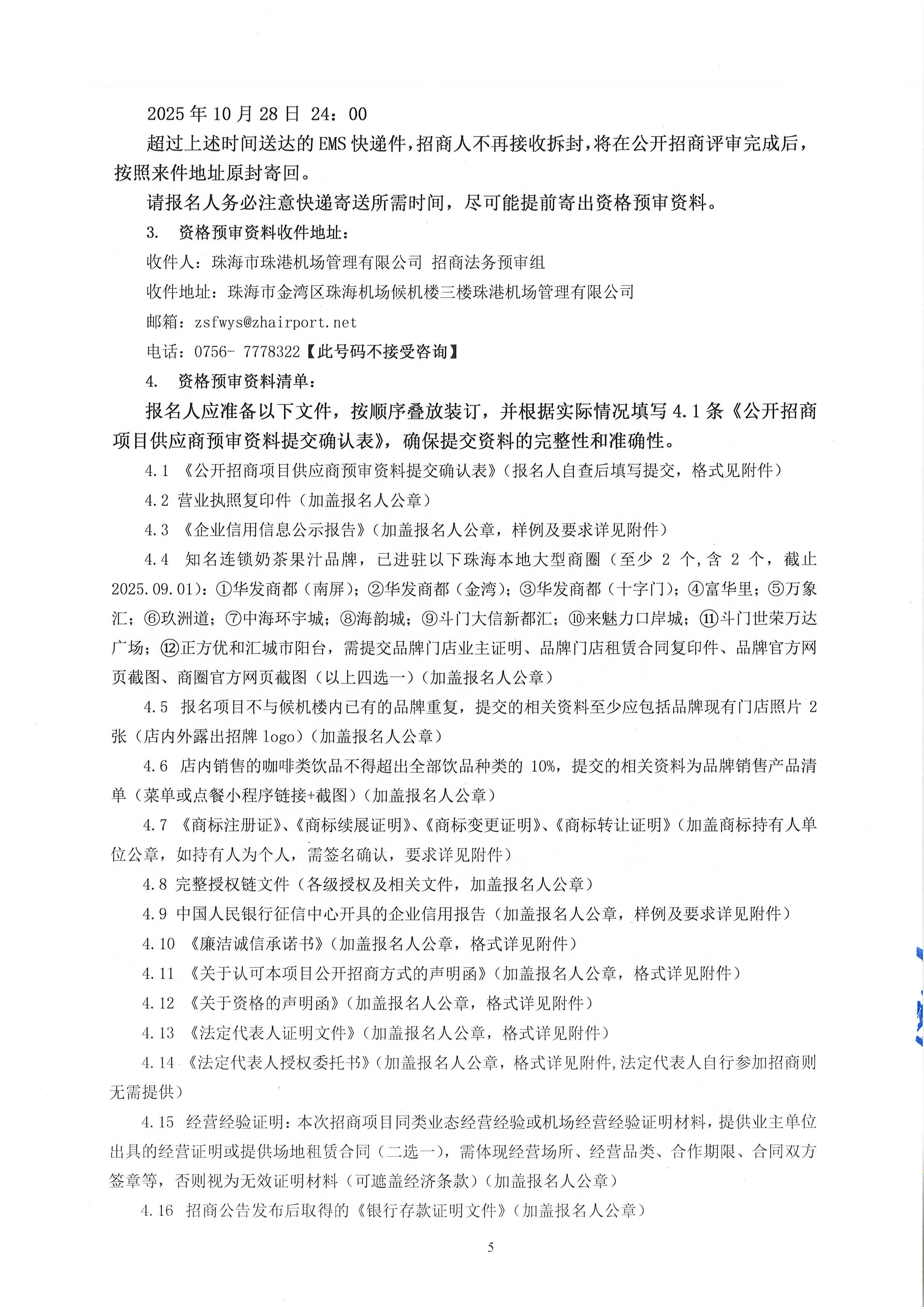 珠海机场隔离区B区2E-F-06号餐饮场地公开招商项目-报名附件