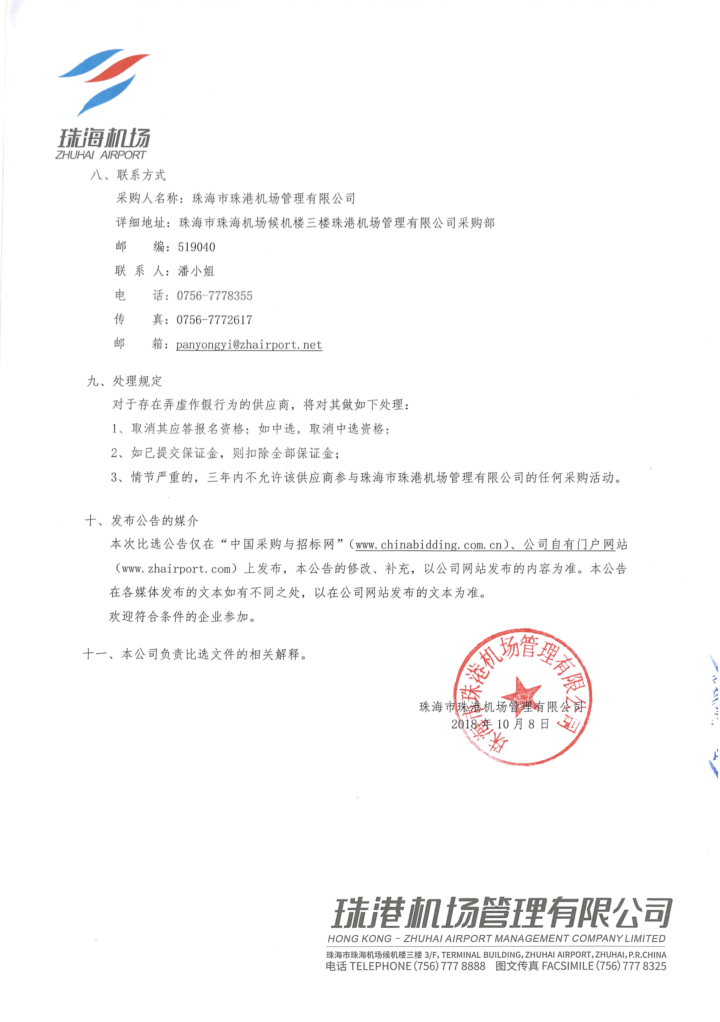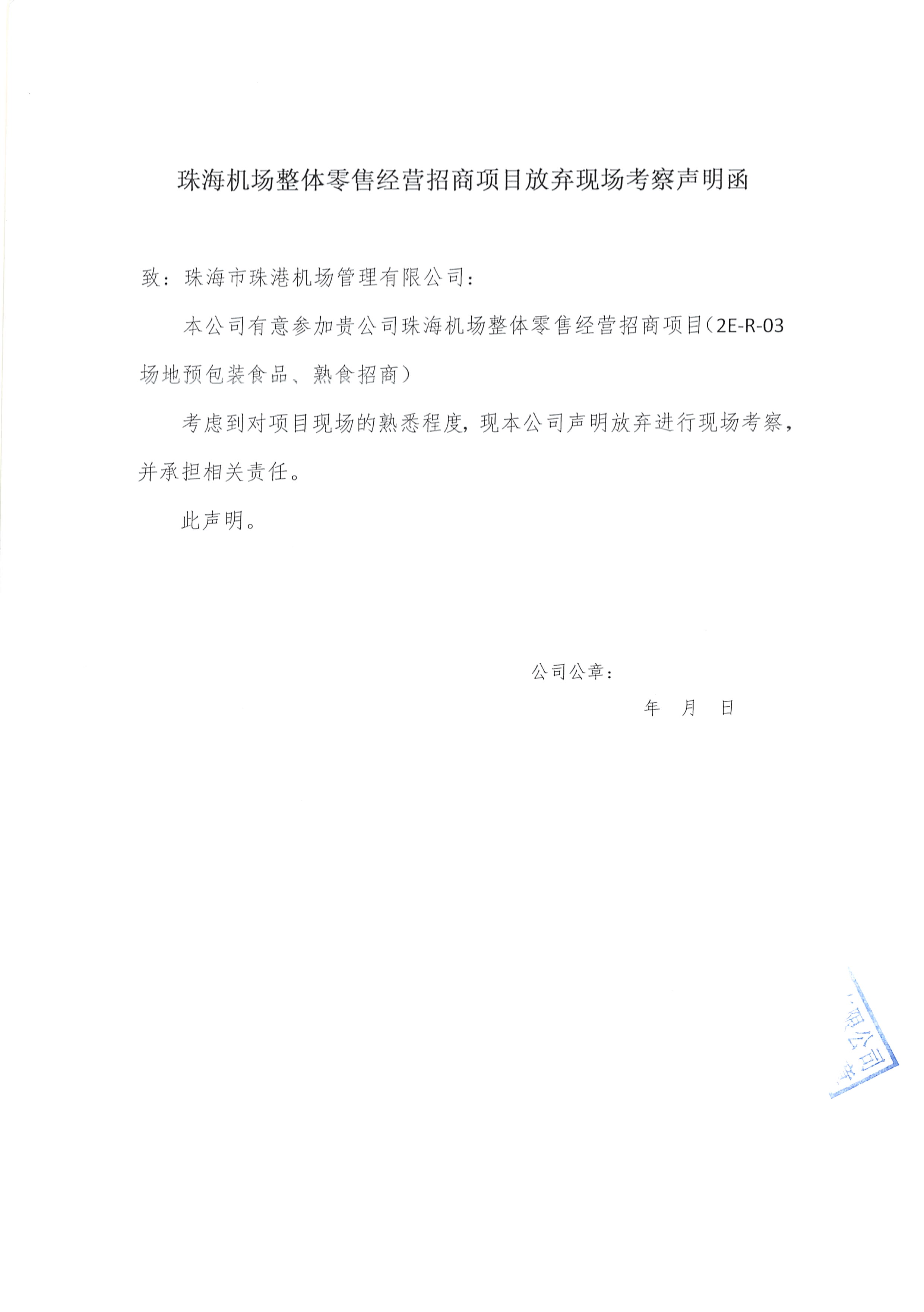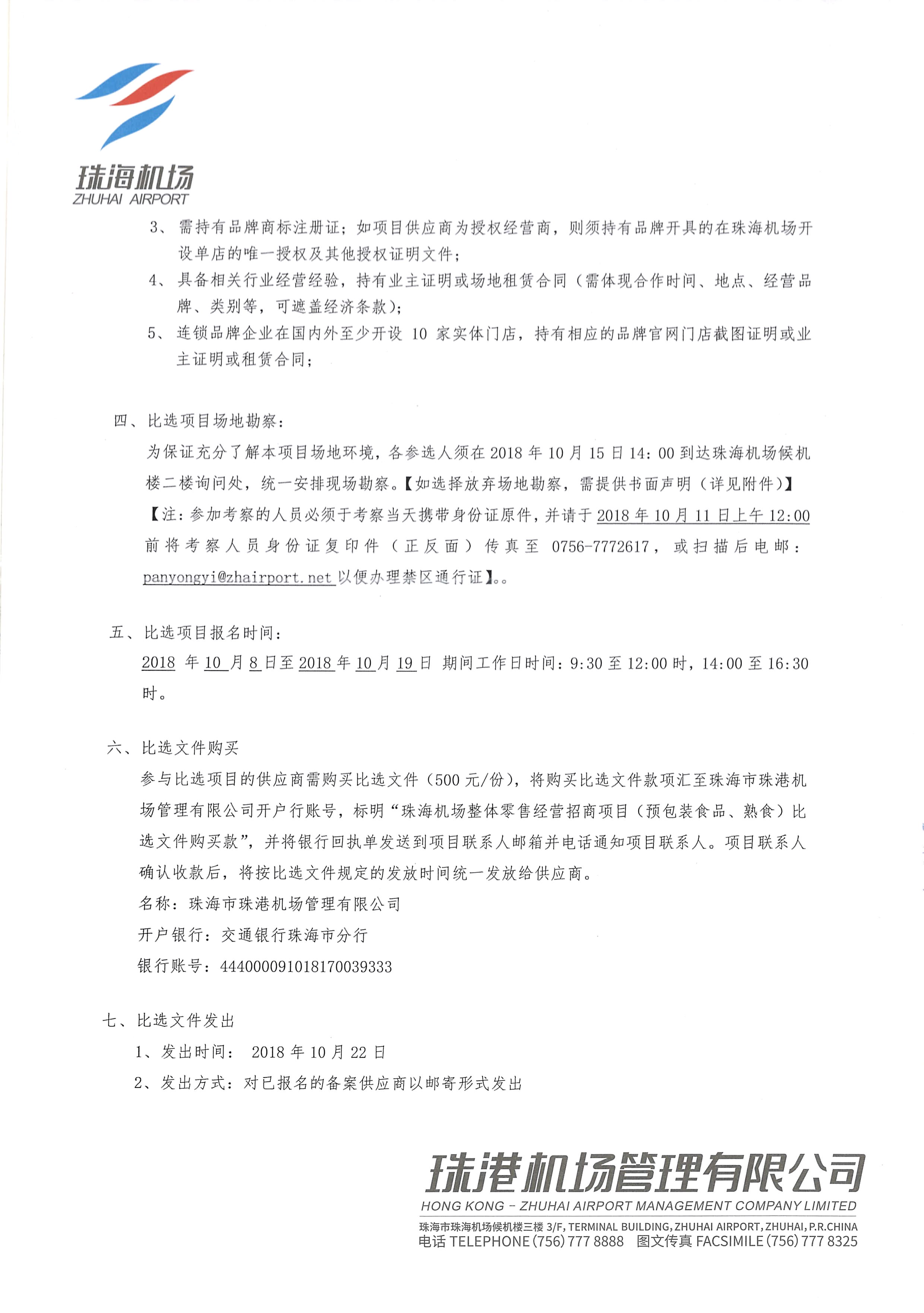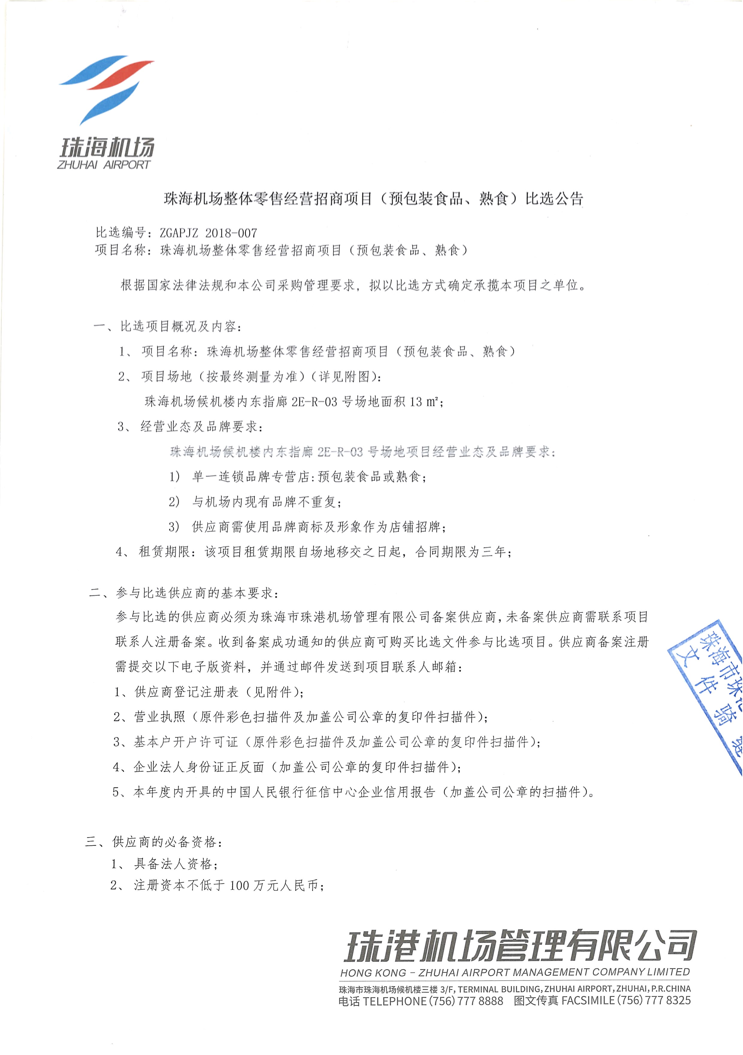 珠海机场整体零售经营招商项目(预包装食品、熟食)比选公告