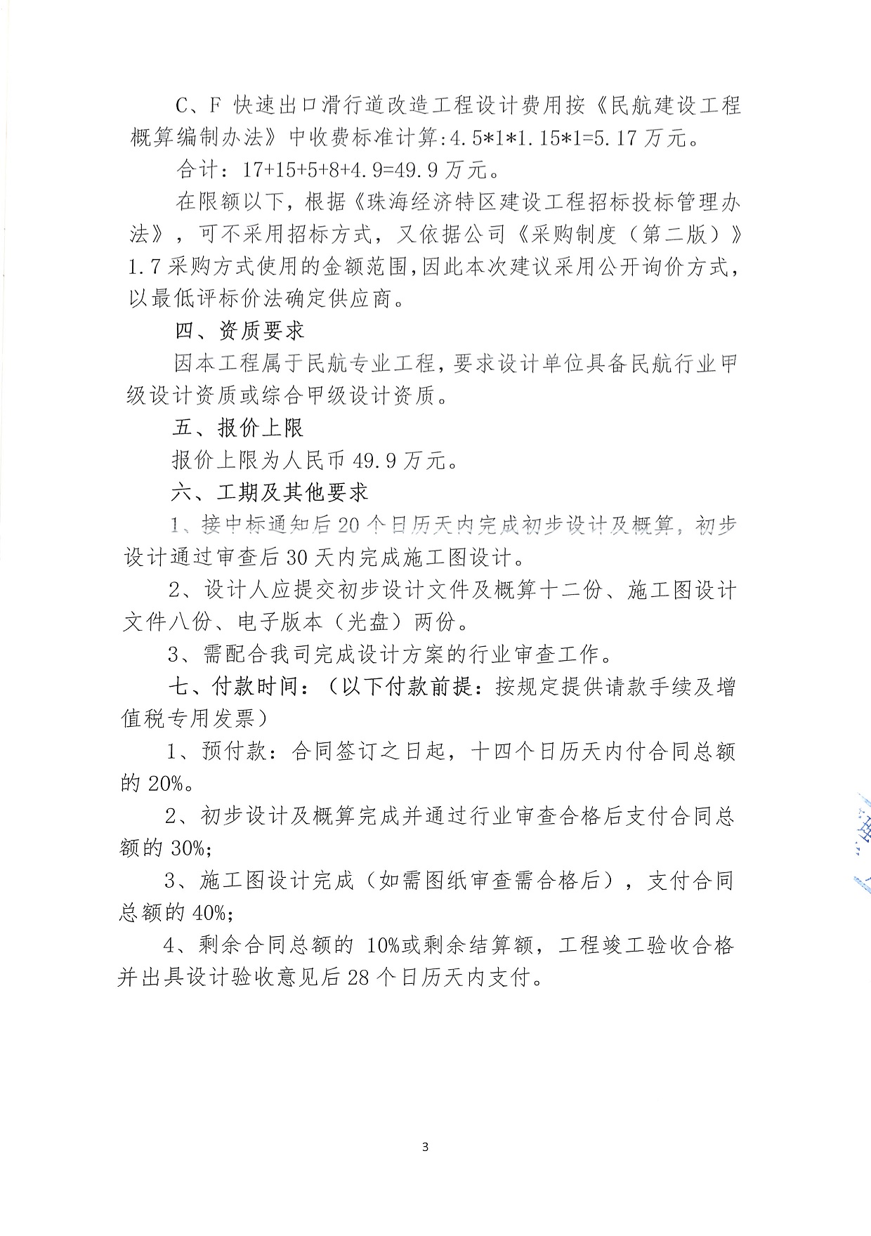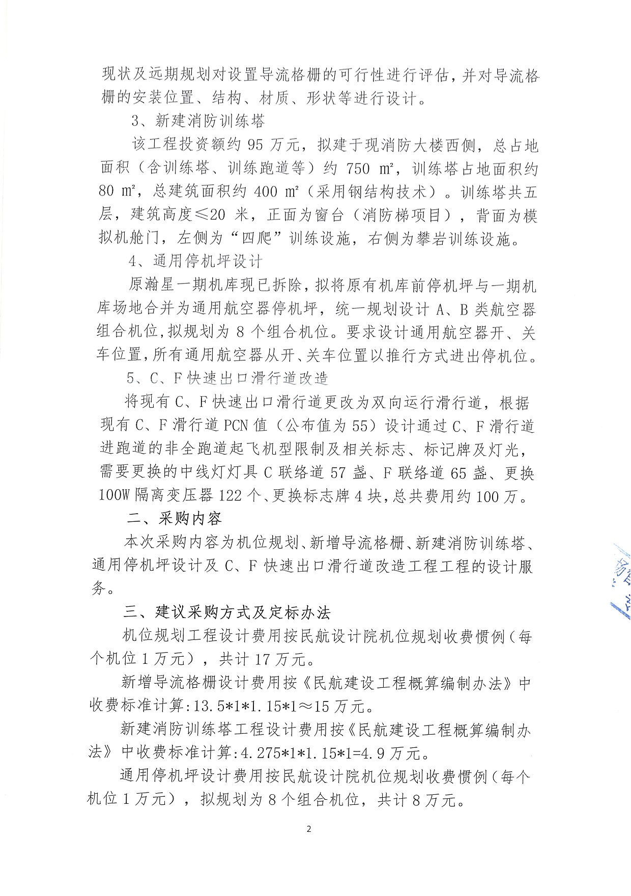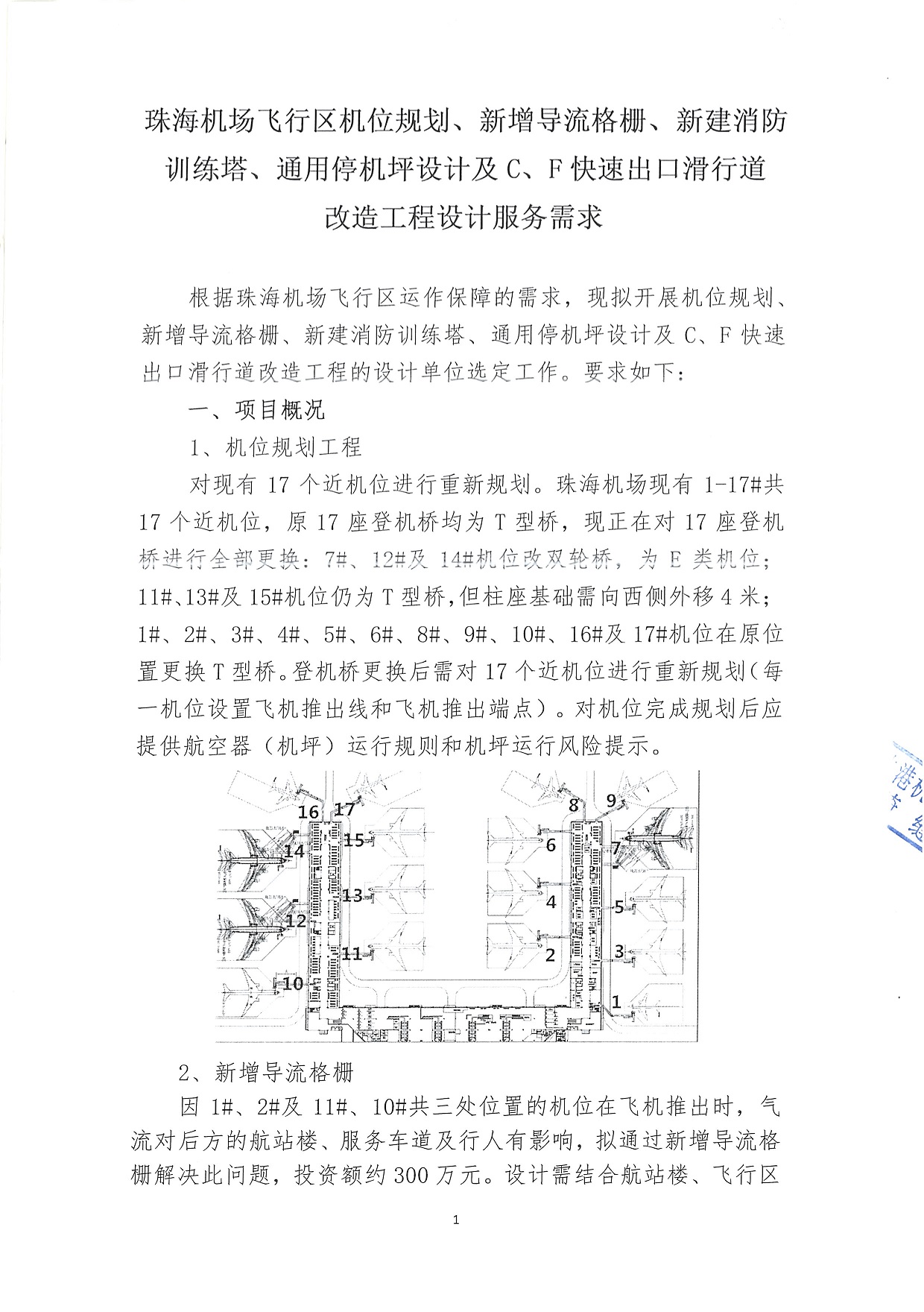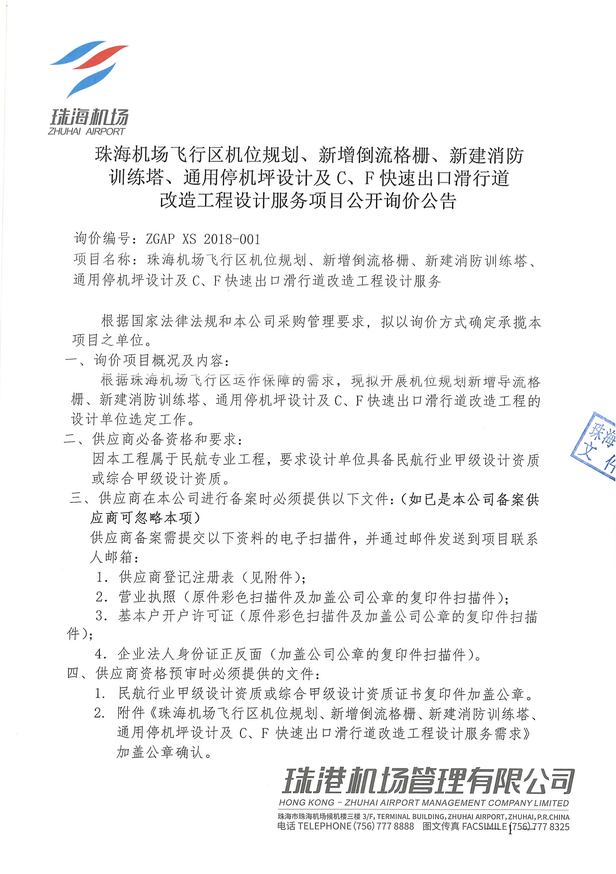 珠海机场飞行区机位规划、新增倒流格栅、新建消防训练塔、通用停机坪设计及C、F快速出口滑行道改造工程设计服务项目公开询价公告