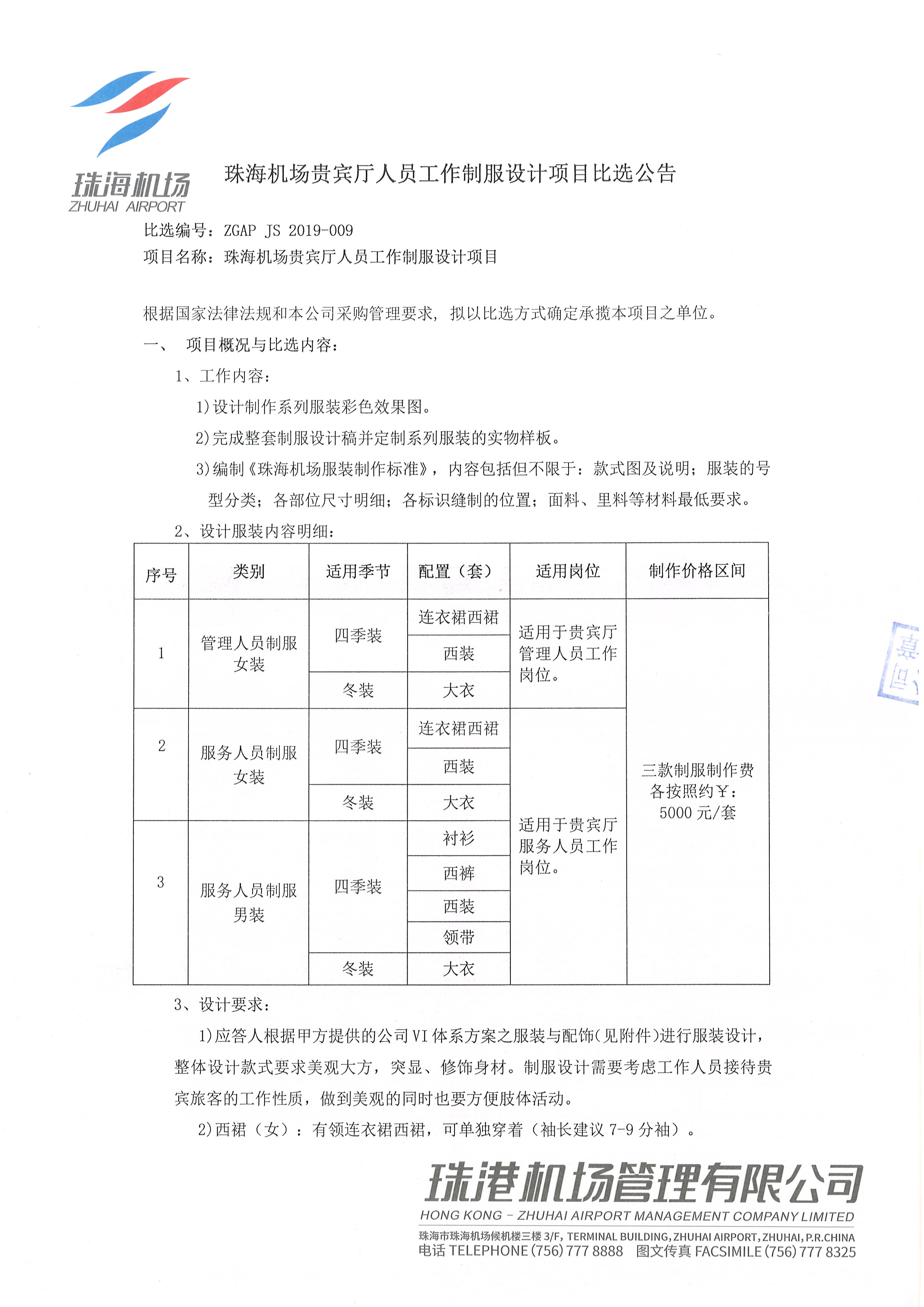 珠海机场贵宾厅人员工作制服设计项目比选公告