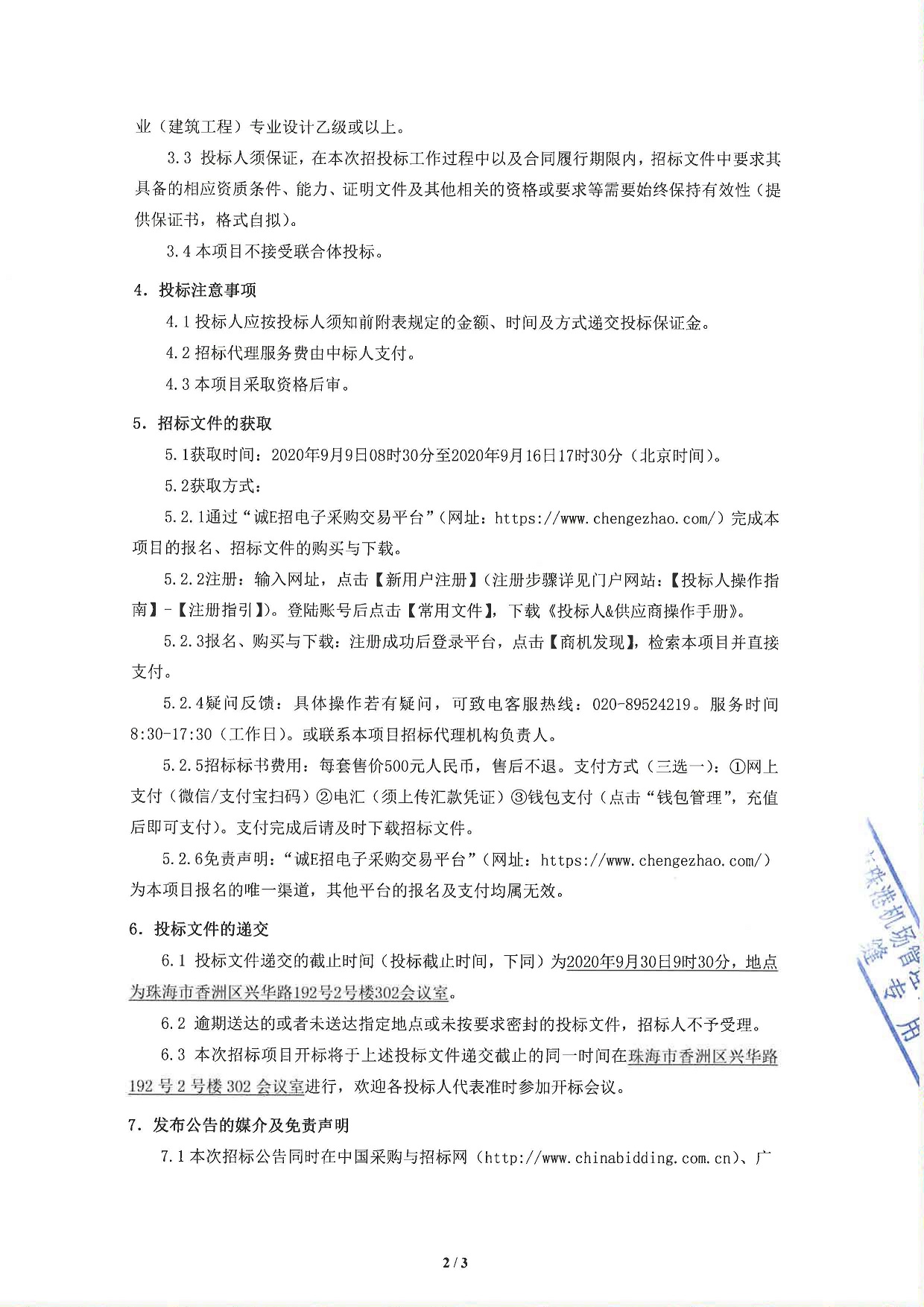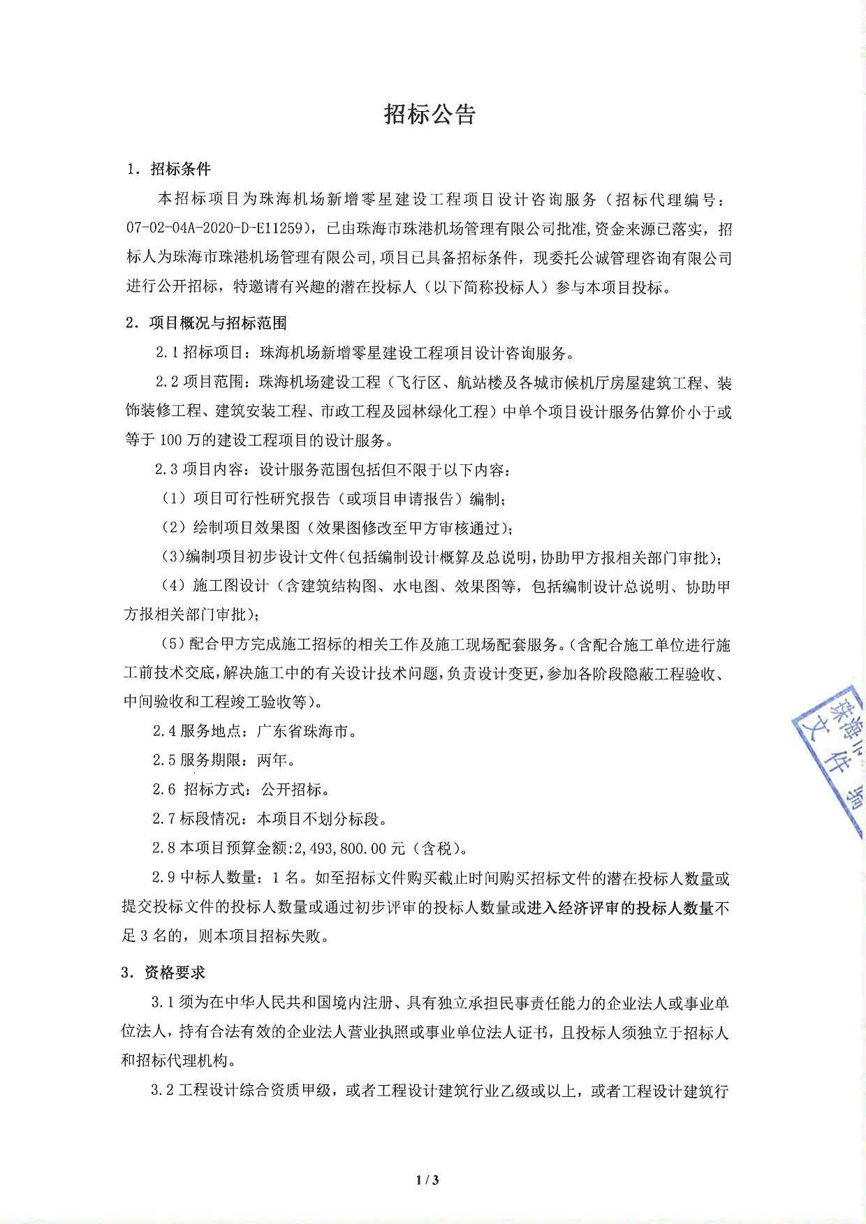珠海机场新增零星建设工程项目设计咨询服务招标公告