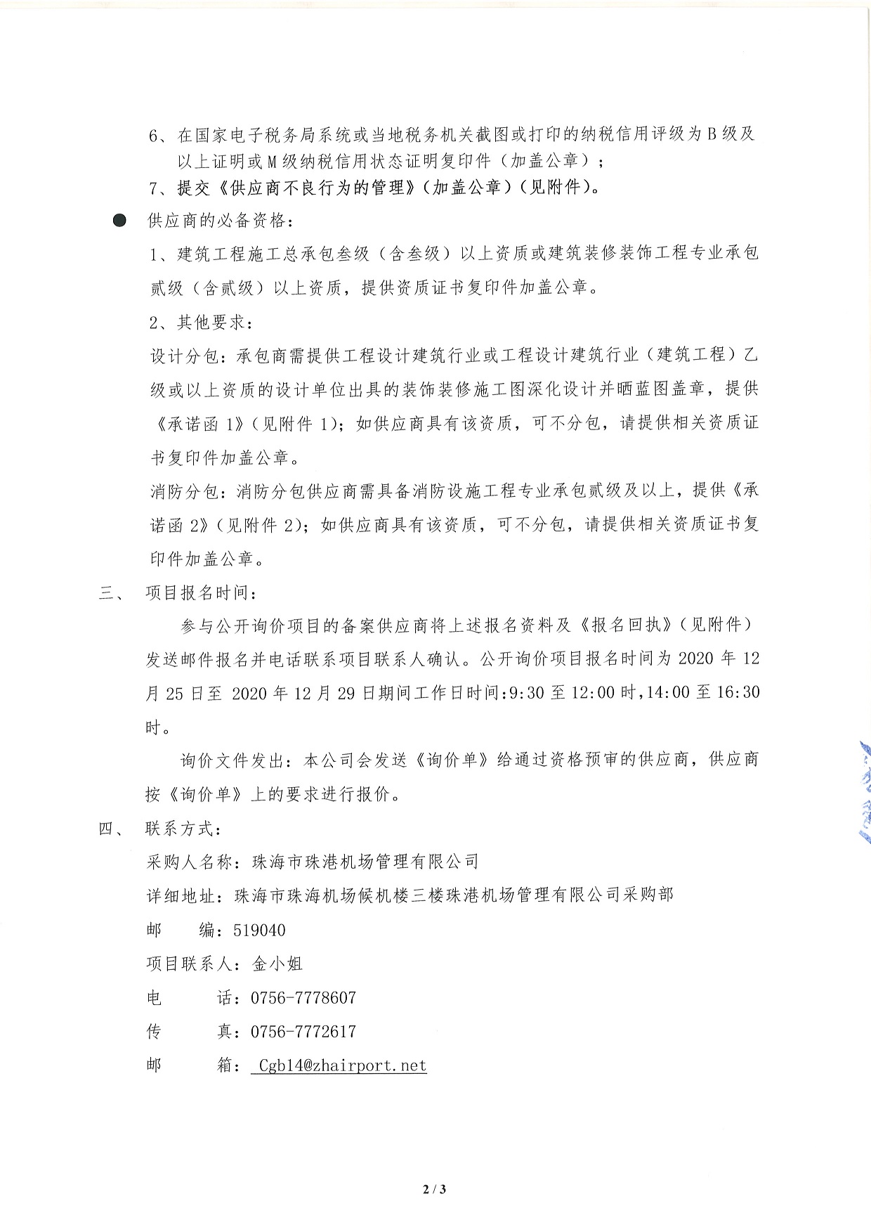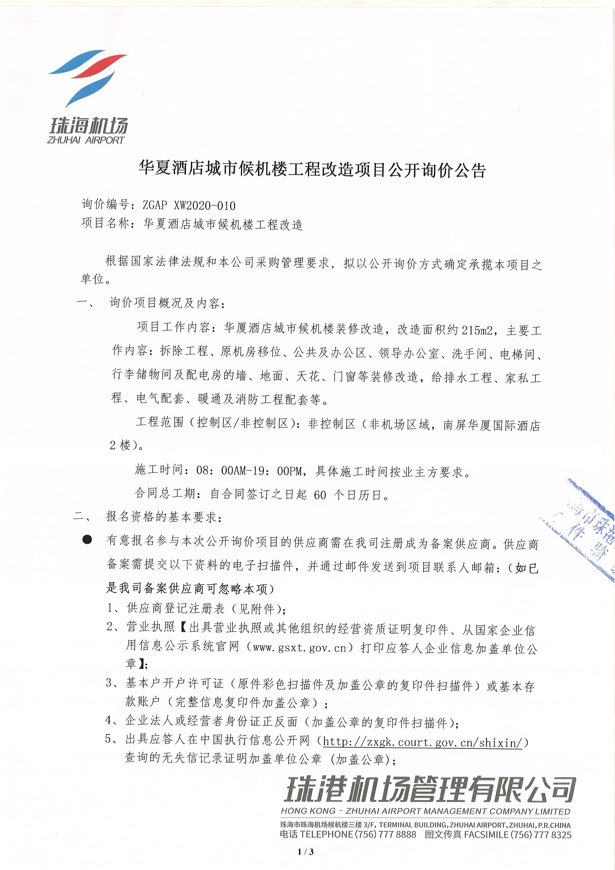 华夏酒店城市候机楼工程改造项目公开询价公告