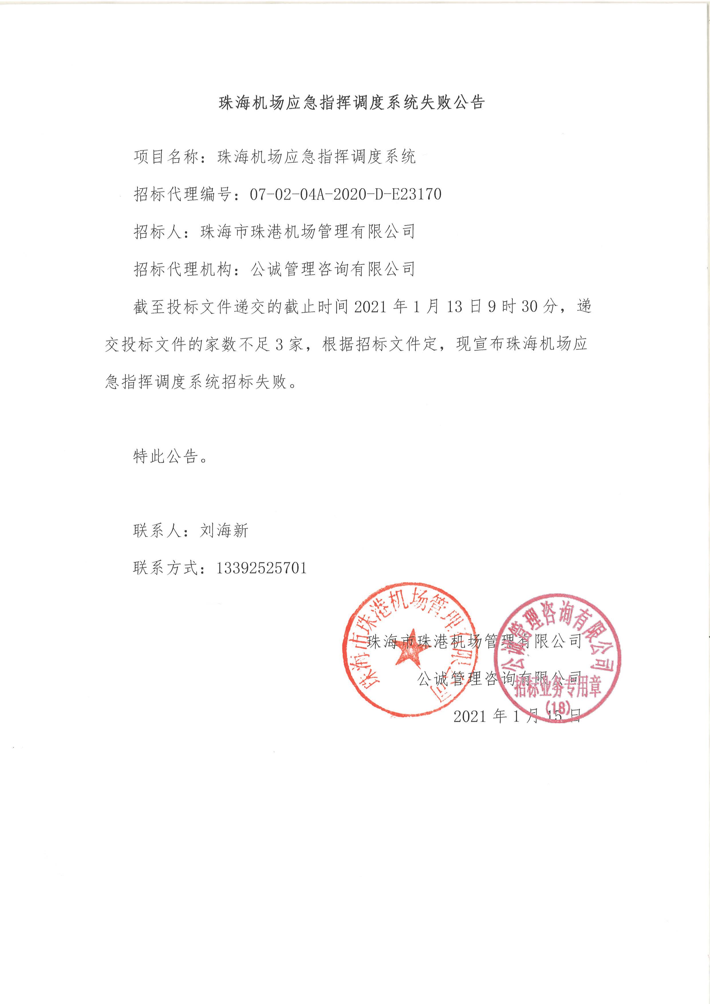 珠海机场应急指挥调度系统失败公告