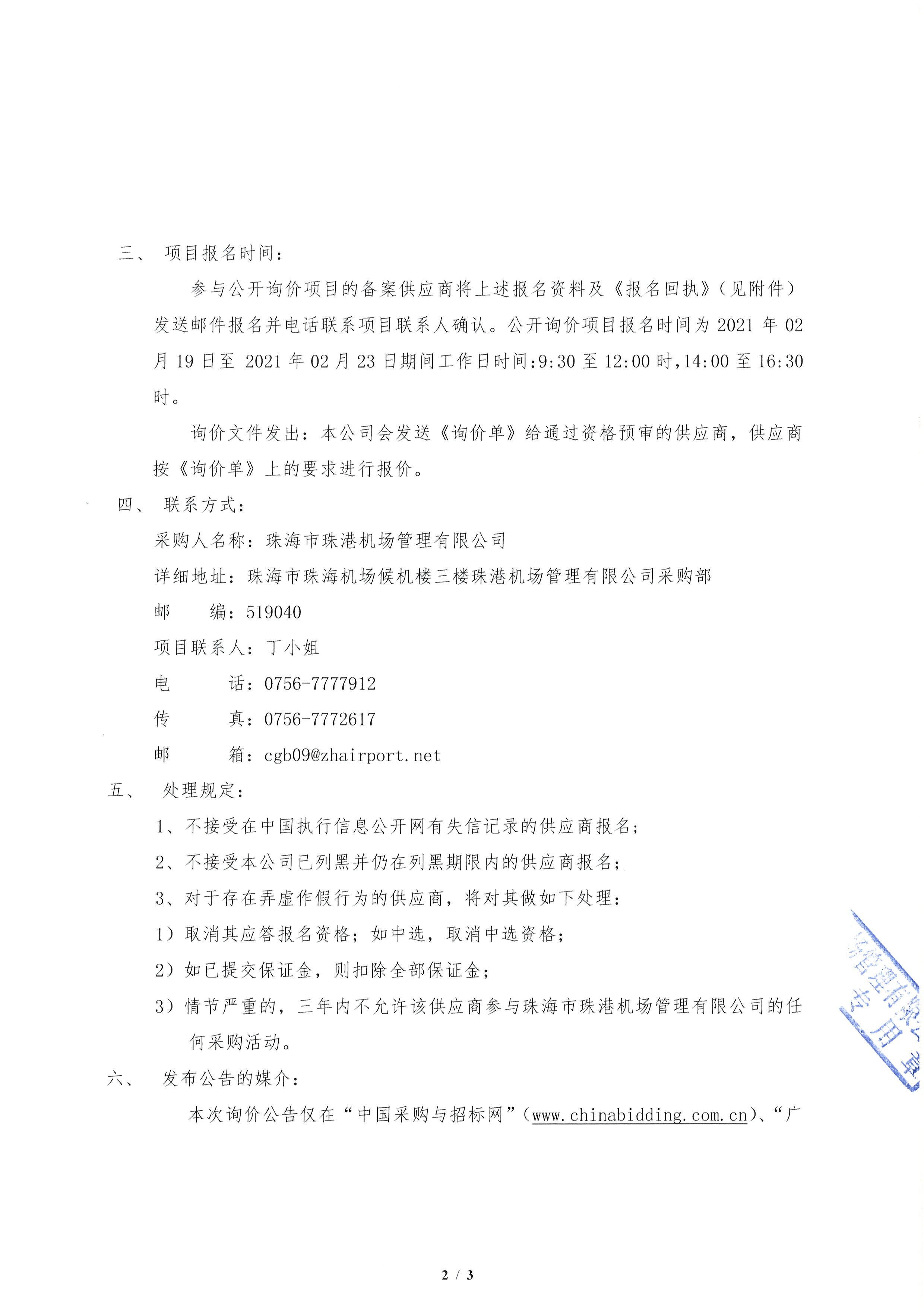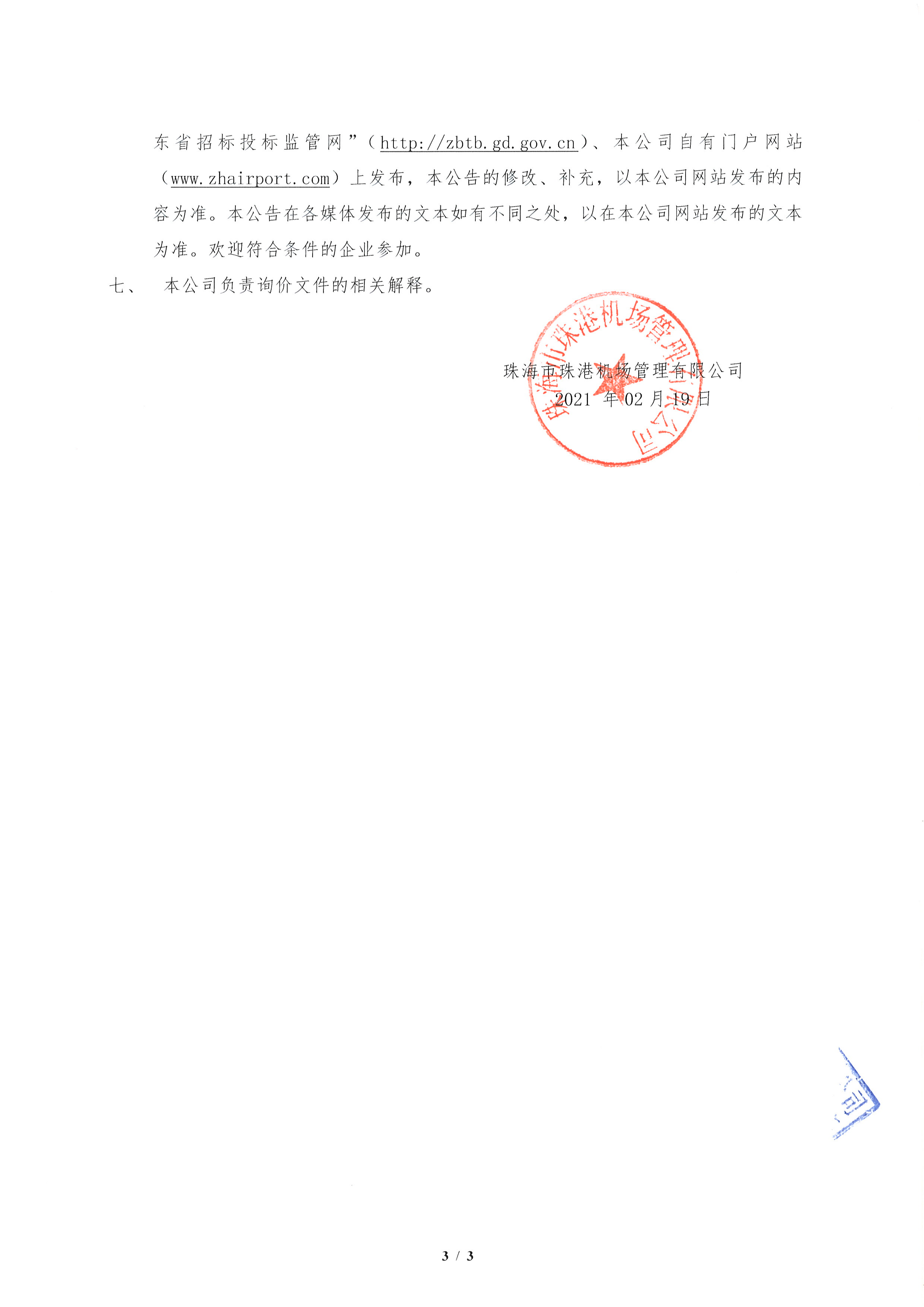 珠海机场2021-2024年办公设备维修保养服务项目公开询价公告