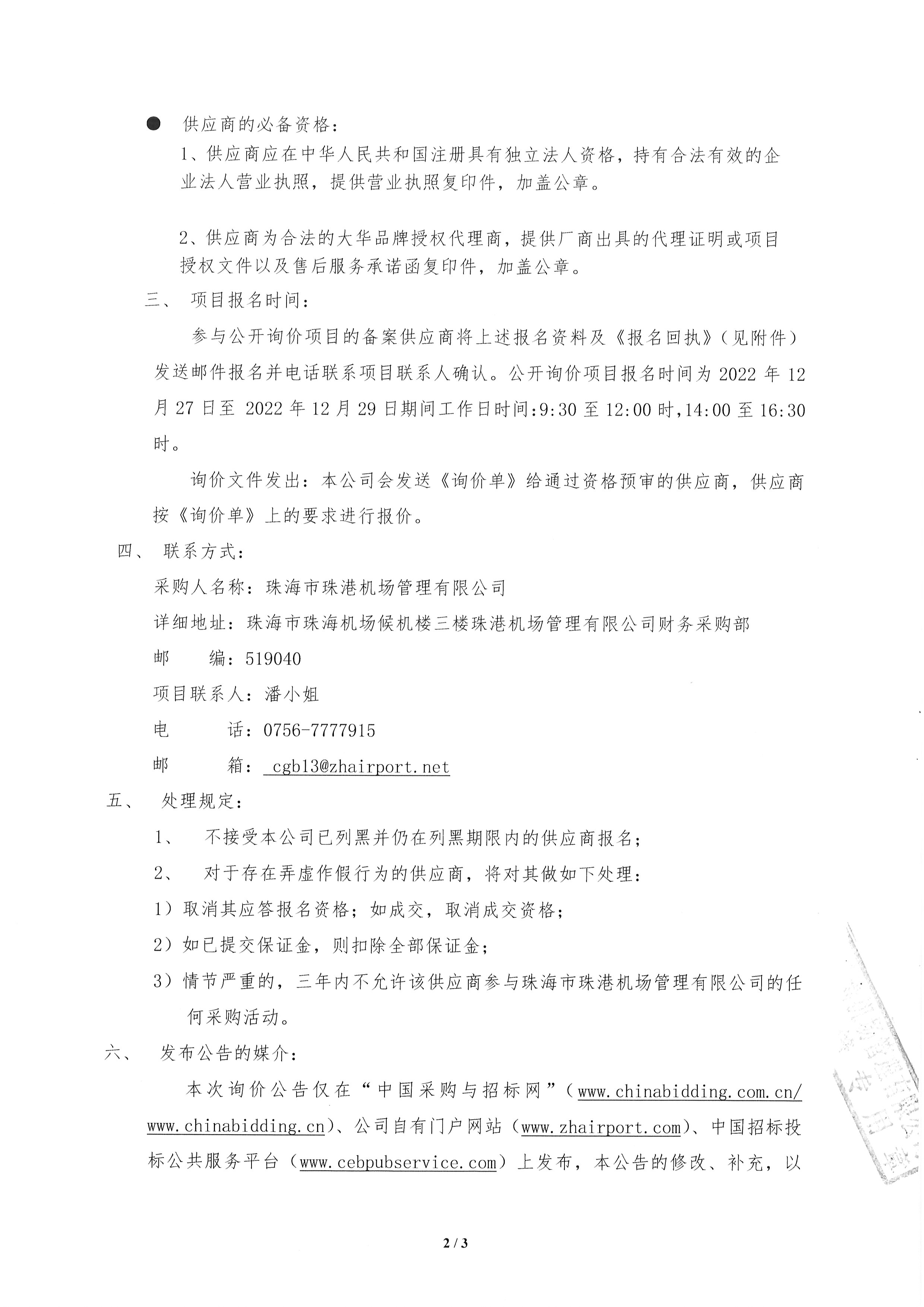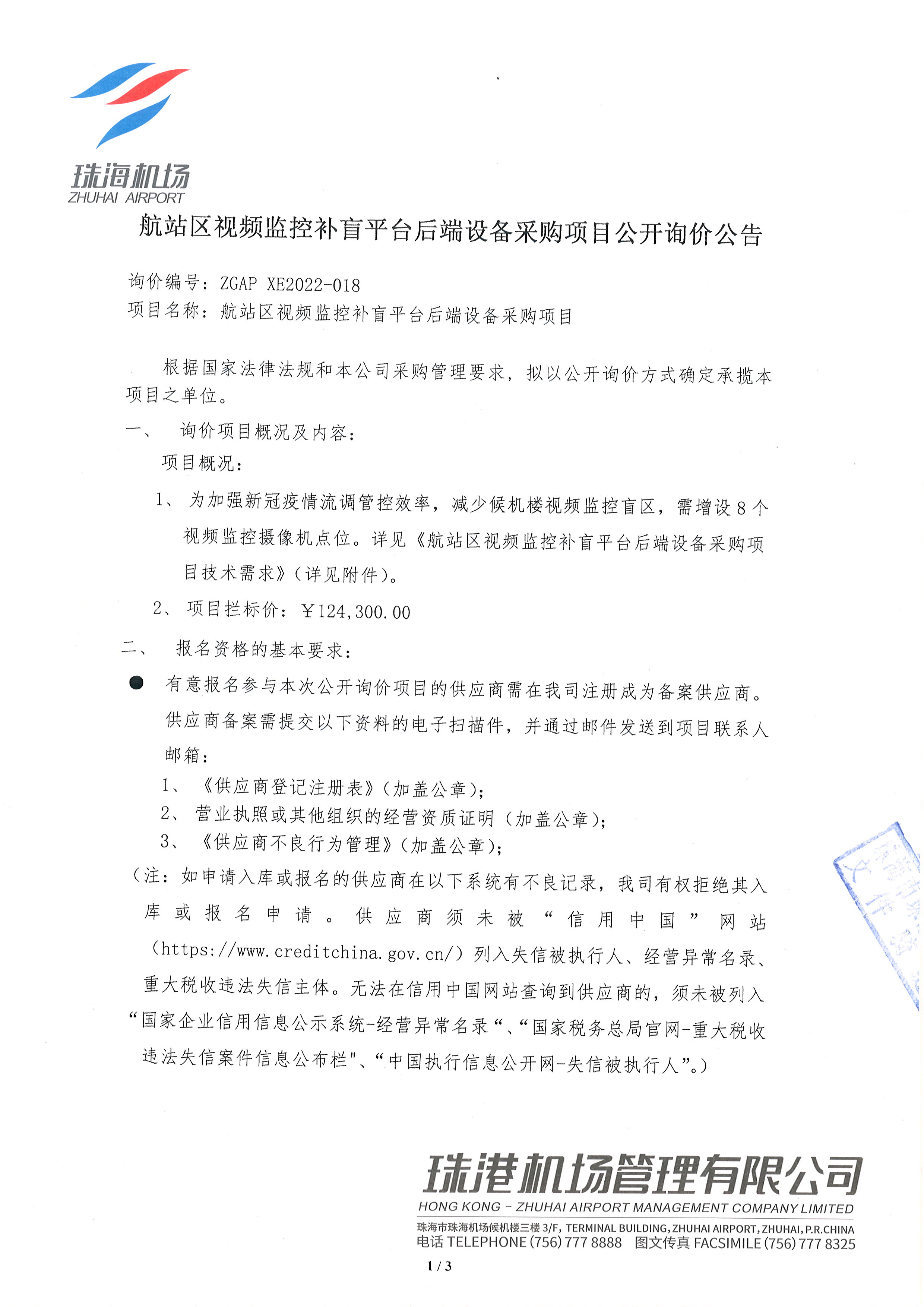 航站区视频监控补盲平台后端设备采购项目公开询价公告