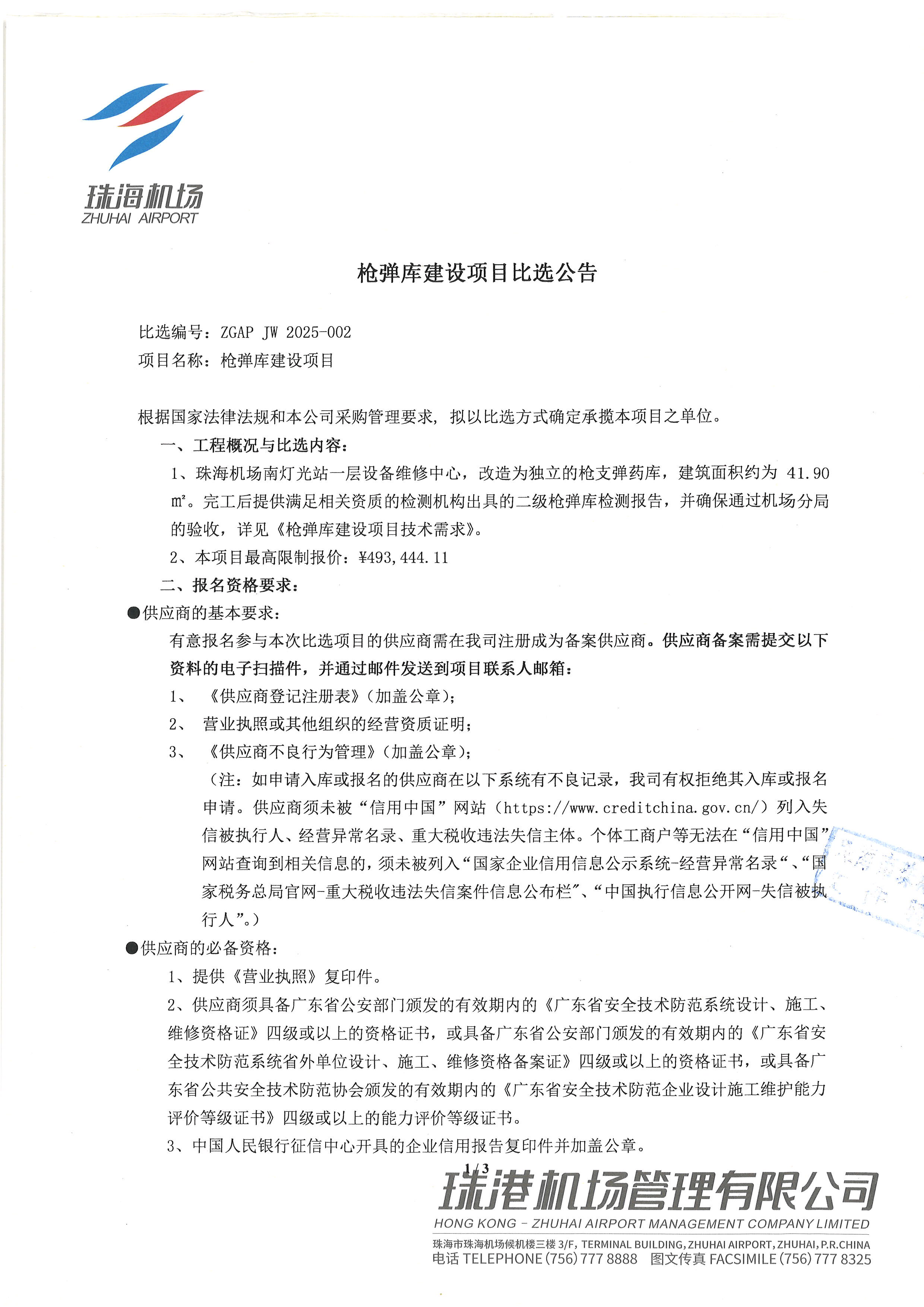 枪弹库建设项目比选公告