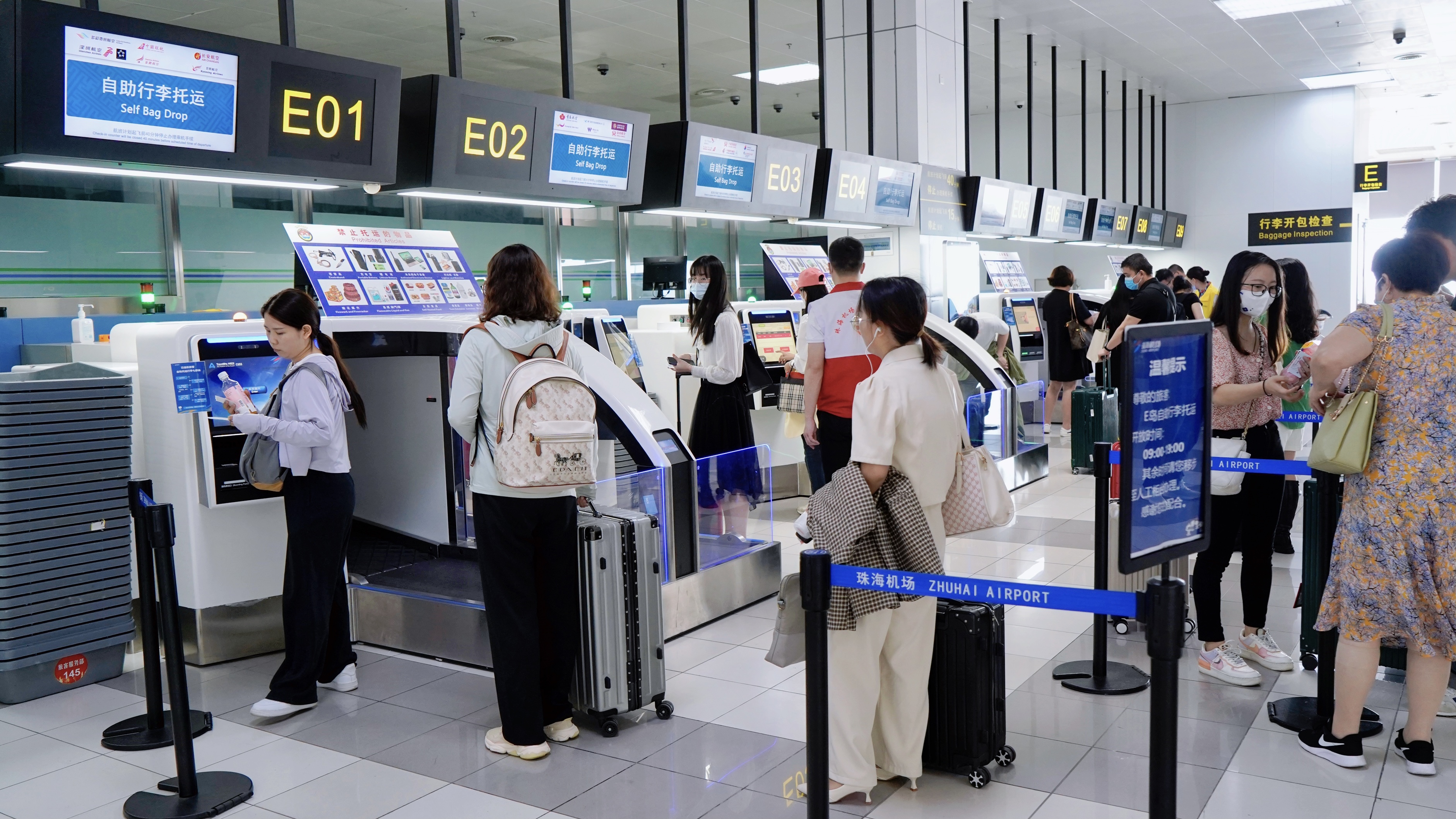 本次“五一”长假的国内航空需求集中释放,珠海机场迎来出游高峰。4月29日-5月3日,珠海机场累计保障进出港旅客19.4万人次,已超越2019年同期,达到历史最高水平。自助托运行李服务从之前日均的384件增长到日均945件,环比增长约1.5倍。从旅客出行目的地来看,客流主要集中在北京、上海、南京、杭州、南昌、海口、重庆、武汉等旅游热点城市。