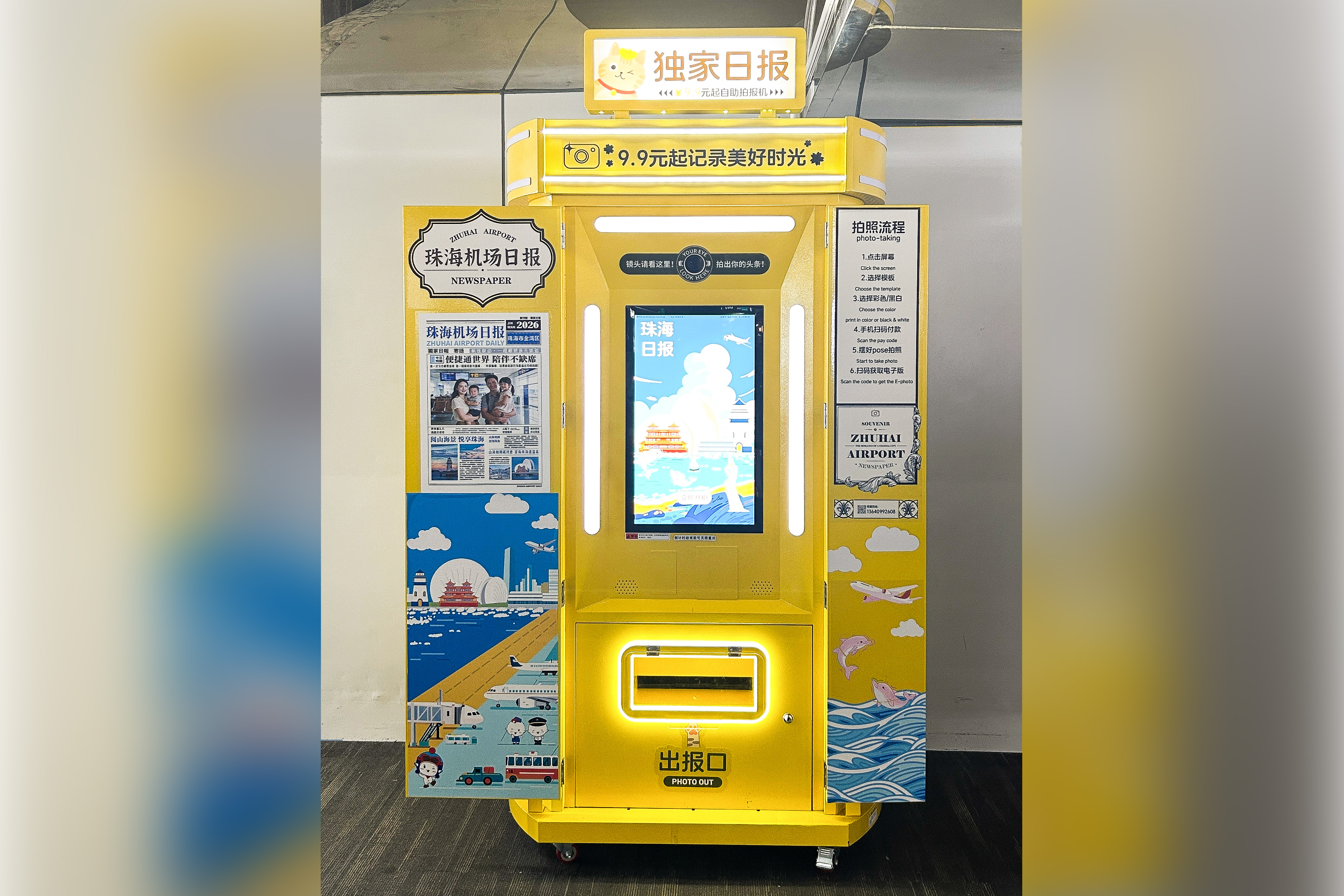 珠海机场候机楼出发大厅、隔离区A区(A02登机口旁)、隔离区B区